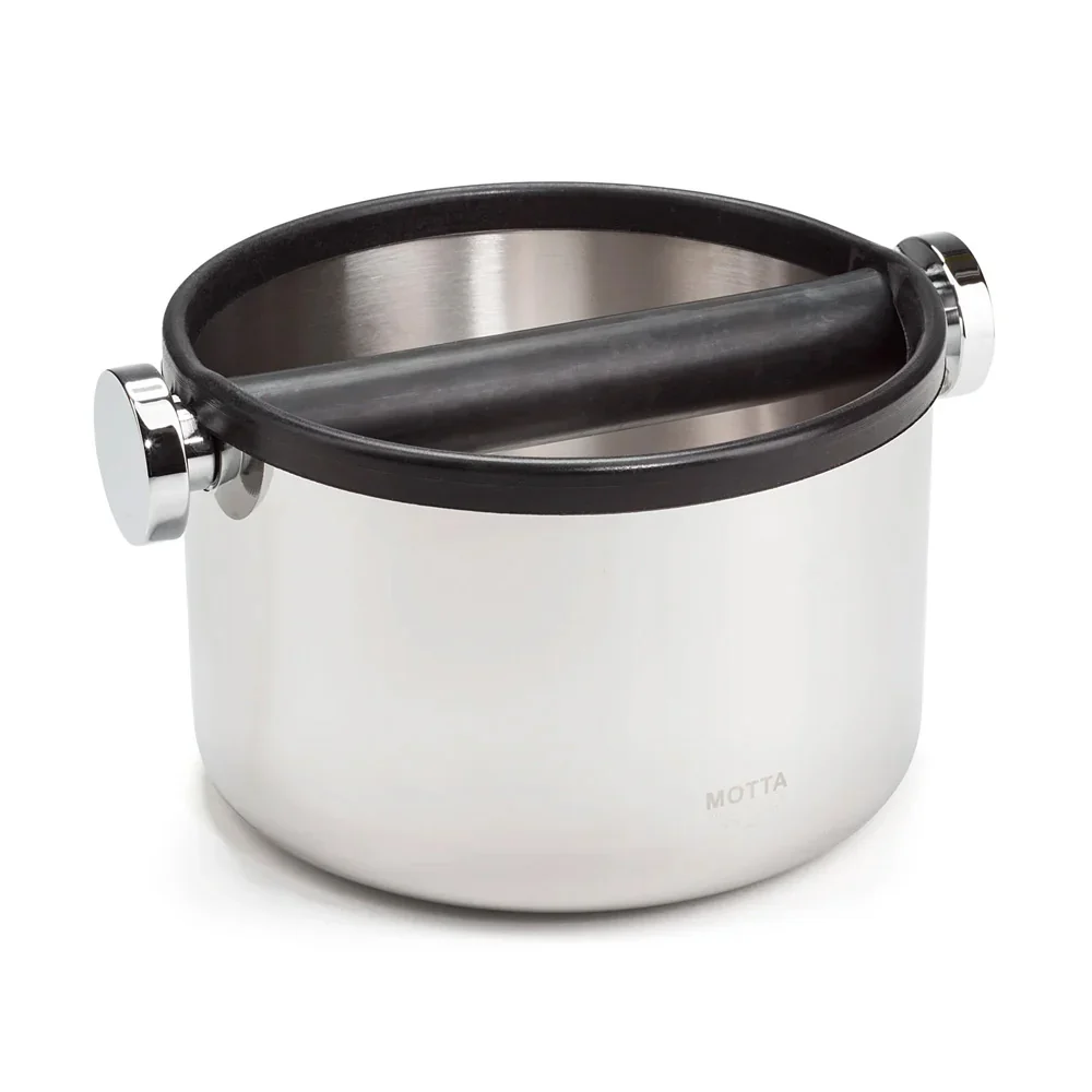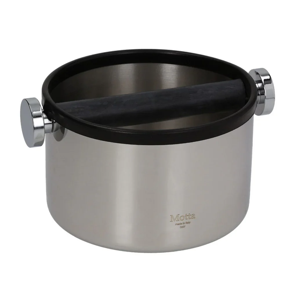 "Motta", founded in Italy in 1967, specialise in the production of beautifully designed, high quality, heavy gauge stainless steel items. This heavy weight, stylish knock box is made of 18/10 stainless, has no welds and the thick absorbing pad on the underside reduces shock. Beautiful to look at and the ideal utensil to knock those stubborn pucks into.